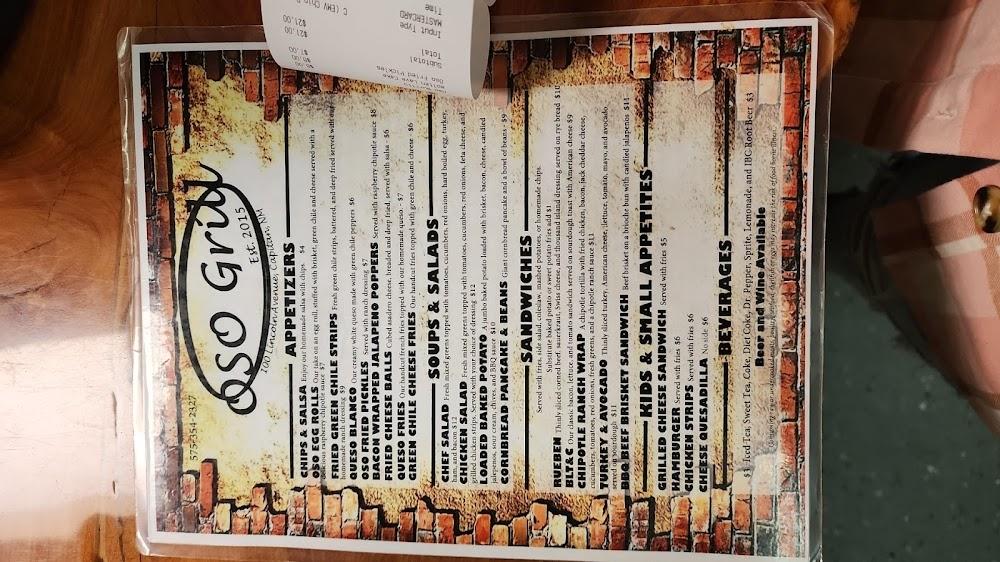 Oso Grill boasts a diverse menu that reflects local tastes. From appetizing starters like Chile Cheese Fries to hearty main courses such as their signature Green Chile Enchilada Casserole, there's plenty to explore. The menu caters to various dietary preferences, featuring kids' options and healthy choices.